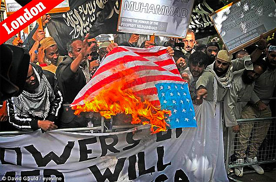 Thousands of people protested in several other countries, some of them burning American flags and effigies of President Barack Obama.