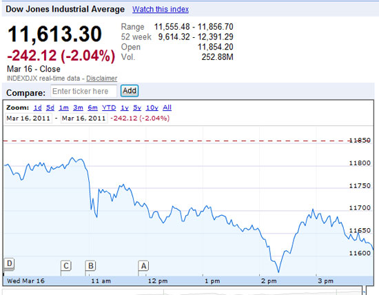 The stock market closed today down -242.12 points today, in a spectacular drop against the Yen.