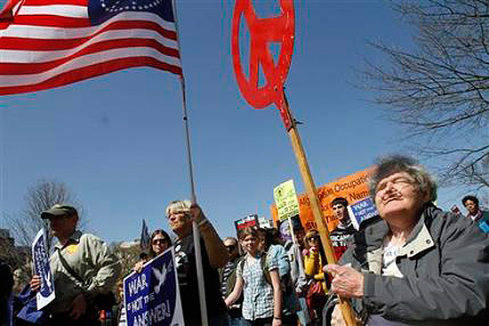 The demonstration in Washington on Saturday merged varied causes, including protesters demanding a U.S. military withdrawal from Iraq and Afghanistan as well as those supporting Bradley Manning, the jailed Army private suspected of giving classified documents to the website WikiLeaks.