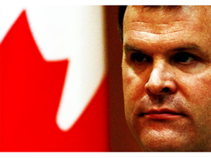 Canadian Minister of Foreign Affairs John Baird leaves the room after announcing Canada is breaking diplomatic relations with Iran during an availability in Vladivostok, Russia