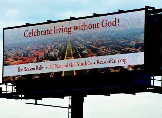 From Yahoo News: An organized group of atheists and some of the biggest voices from their movement will hold Reason Rally on The National Mall this weekend to raise awareness for their cause and to encourage members of Congress to respect their views.