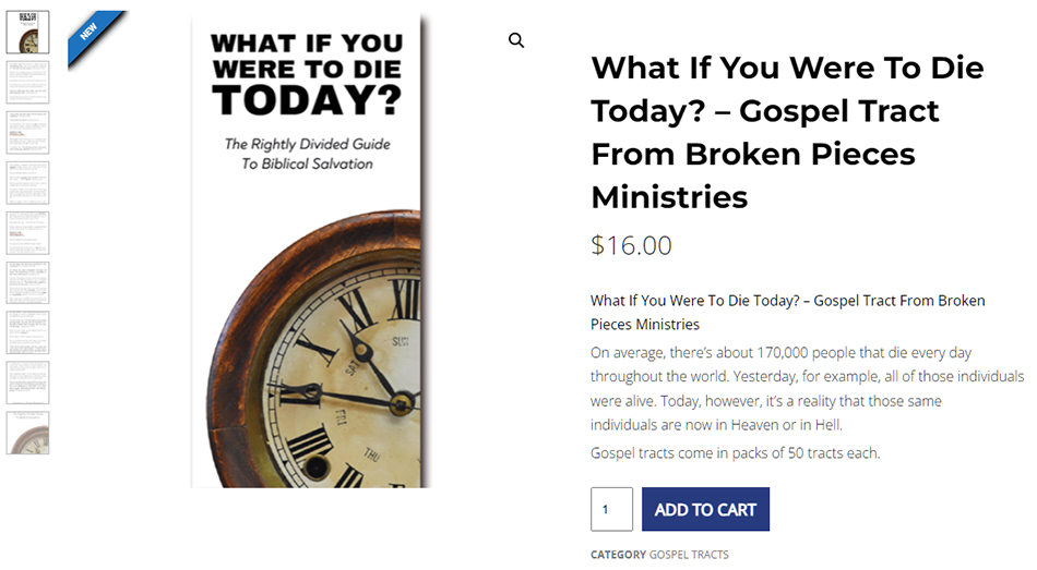 This is the official gospel tract of NTEB, used here on the streets of Saint Augustine and sent around the world as they are purchased through our website. We ask you to prayerfully consider supporting the work of Now The End Begins by purchasing a box of these full-color, high-quality gospel tracts. Thank you in advance!