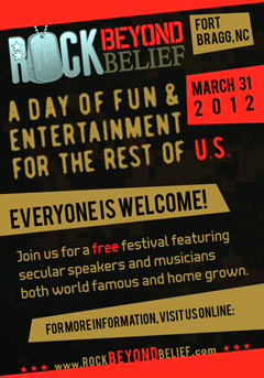 The plan is to hold the event on March 31 at the main parade field at Fort Bragg, where the Christian-themed Rock the Fort concert was held. Famed atheist Richard Dawkins is scheduled to appear, along with musicians, speakers and other entertainment.