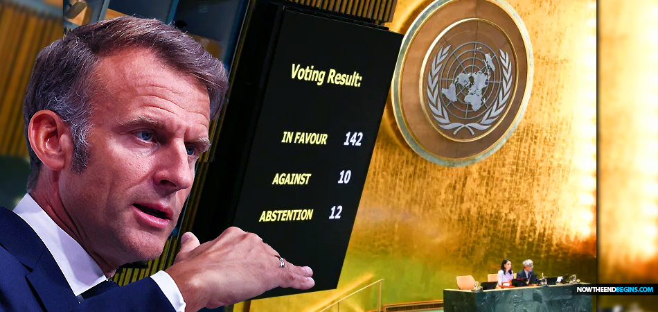Emmanuel Macron hit it out of the park this afternoon at the United Nations where France and Saudi Arabia presented ‘The New York Declaration’ calling for the creation of a state of Palestine. The vote was 142 nations in favor, 10 against with 12 abstentions from voting. Step 1 of his end times master plan in now in place, Macron is now regrouping for his presentation to the UN that he will co-chair with Crown Prince Mohammed bin Salam of Saudi Arabia on September 22nd.