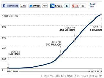 Topping the 1 billion mark means that Facebook now reaches one out of every 7 people on the planet.