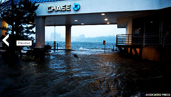 Rising water from the Hudson River overtakes a bank drive-through as Superstorm Sandy pushed ashore.