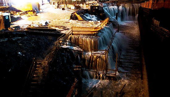 Sea water floods the Ground Zero construction site at the World Trade Center, Monday, Oct. 29, 2012, in New York.