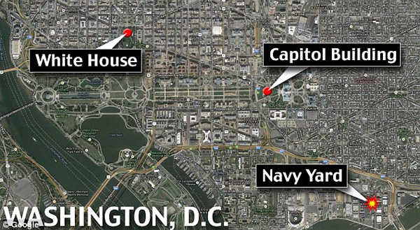 Washington D.C. police said that the gunman is believed to have barricaded himself between the third and fourth floors in a room on the grounds of the naval yard, although this has not been confirmed. source – Daily Mail UK