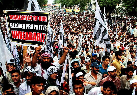 Emotions run high: Thousands of protesters shout slogans during a march in Lahore, Pakistan, against an anti-Islam film made in the U.S.