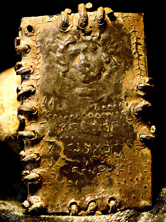 The extraordinary picture of one of the recently discovered hoard of up to 70 lead codices – booklets – found in a cave in the hills overlooking the Sea of Galilee is one reason Bible historians are clamouring to get their hands on the ancient artifacts. The tiny booklet, a little smaller than a modern credit card, is sealed on all sides and has a three-dimensional representation of a human head on both the front and the back. One appears to have a beard and the other is without. Even the maker’s fingerprint can be seen in the lead impression. Beneath both figures is a line of as-yet undeciphered text in an ancient Hebrew script.