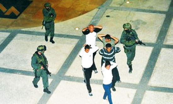 “I don’t remember such a large cache of bombs caught on one person,” Lt.-Col. Erez, commander of the Haruv Battalion said. Three other Palestinians who were in line with the man carrying the weapons were also detained. The IDF suspects that the attack was planned against the Samaria Military Court, since the line the Palestinians were standing in only goes into the court and back out.