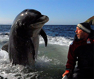 Flippin' heck: A coalition of scientists are calling for a bill of rights to protect dolphins like bottlenose Fungie who loves to entertain sightseers in boats in Dingle, Ireland