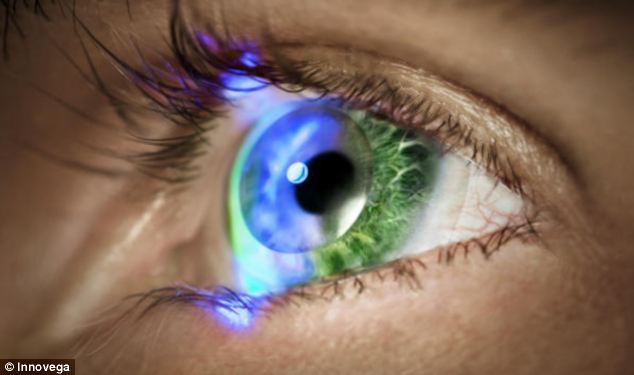 The tiny ‘screens’, which are the invention of Washington-based group Innovega, sit directly on a users’ eyeballs and work with a pair of lightweight glasses.