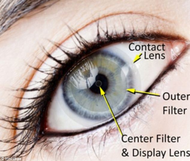 Crucially, the device can be worn while moving around in a similar way to Google Glass. Innovega customised the standard contact lens manufacturing process with a unique filter to make the contact lenses.
