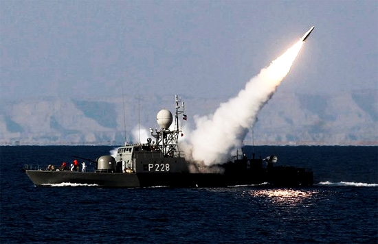 An Iranian warship fires a Mehrab missile during naval wargames in the Strait of Hormuz on January 1. Iran has begun mass production of an anti-ship cruise missile, state television's website said on Saturday. (AFP Photo/Ebrahim Noroozi)