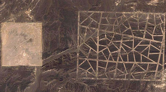 Some internet users have been trying to overlay one of the strange structures on to various U.S. city maps, worried that there may be a sinister military purpose behind them. Others have pointed out that if China wanted to attack a U.S. city, it doesn’t need a practise map in the desert.