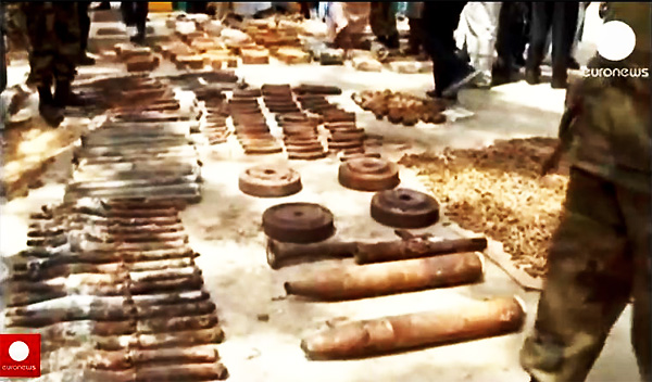 Suspected Hezbollah weapons cache uncovered May 2013 in Kano, Nigeria. (screen capture: Youtube/Euronews)