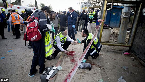 The blast could be heard throughout Jerusalem and blew out the windows of two crowded buses. Live television showed the bus with broken windows and bloodstains on the pavement. The Magen David Adom ambulance service said it appeared no one had been killed. Israeli Prime Minister Benjamin Netanyahu postponed his departure to Russia after the suspected bombing, his office said. He had been scheduled to hold talks with Russian leaders in Moscow and return on tomorrow.