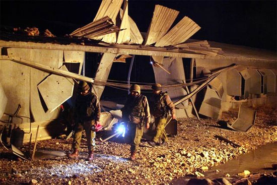 Soldiers examine the damage after a rocket fired from Lebanon hit buildings in northern Israel early Tuesday.