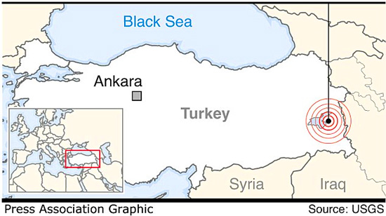 Up to 1,000 people were feared dead today after a powerful earthquake hit Turkey. The 7.2-magnitude tremor devastated parts of Van province in the east of the country, collapsing dozens of buildings into piles of twisted steel and chunks of concrete.