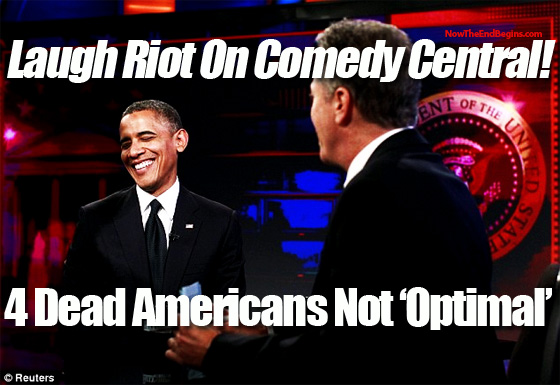 From Daily Mail: President Barack Obama, during an interview to be shown on Comedy Central, has responded to a question about his administration’s confused communication after the Benghazi attack, by saying: ‘If four Americans get killed, it’s not optimal.’