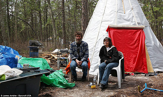 ‘We have been in and out of the camp for a year,’ said ex-hotel worker Burt Haut, 43, who lives with his wife, ex-teacher Barbara, 48 in a tent styled like a teepee from the Old West.