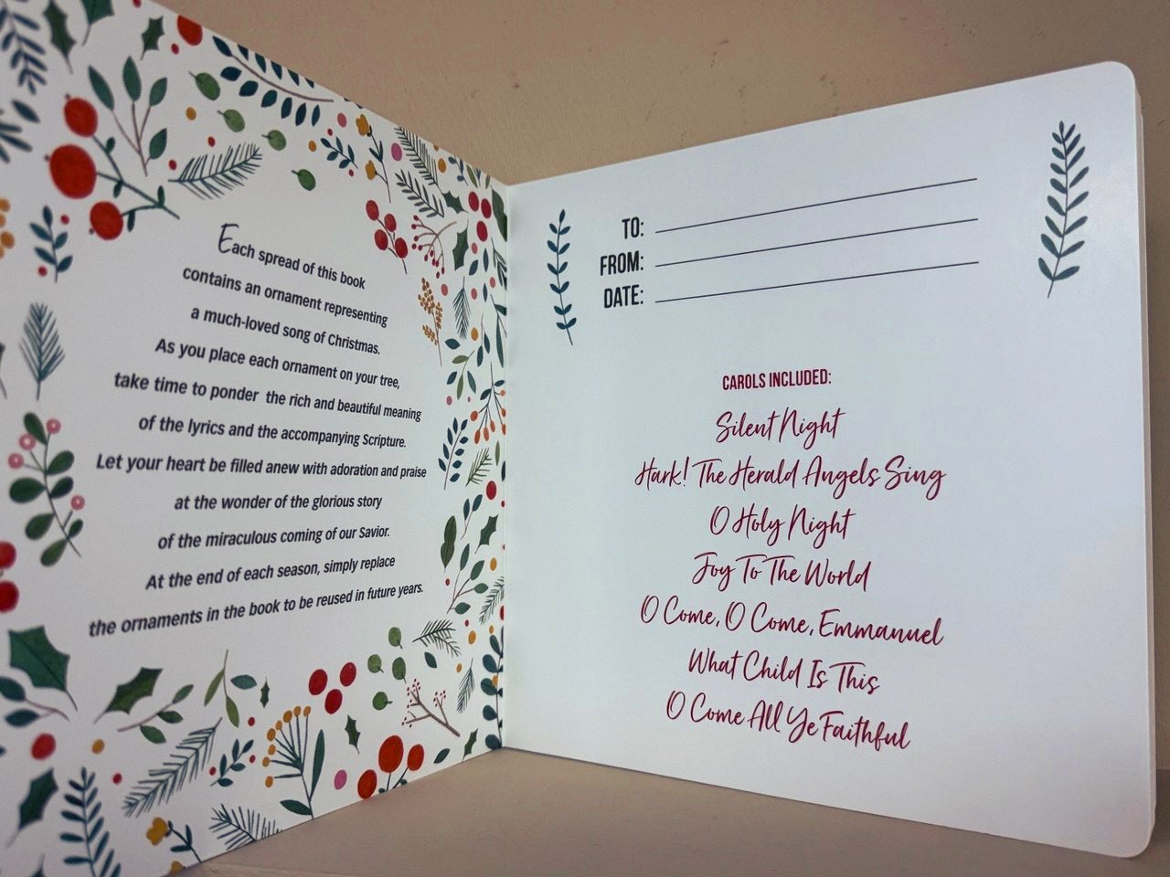 • Each Christmas carol ornament features a scripture verse on its theme