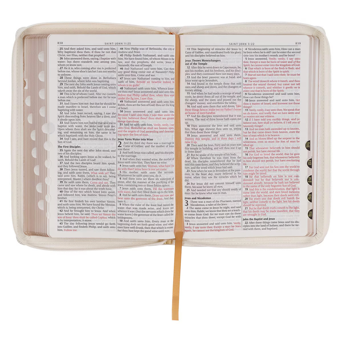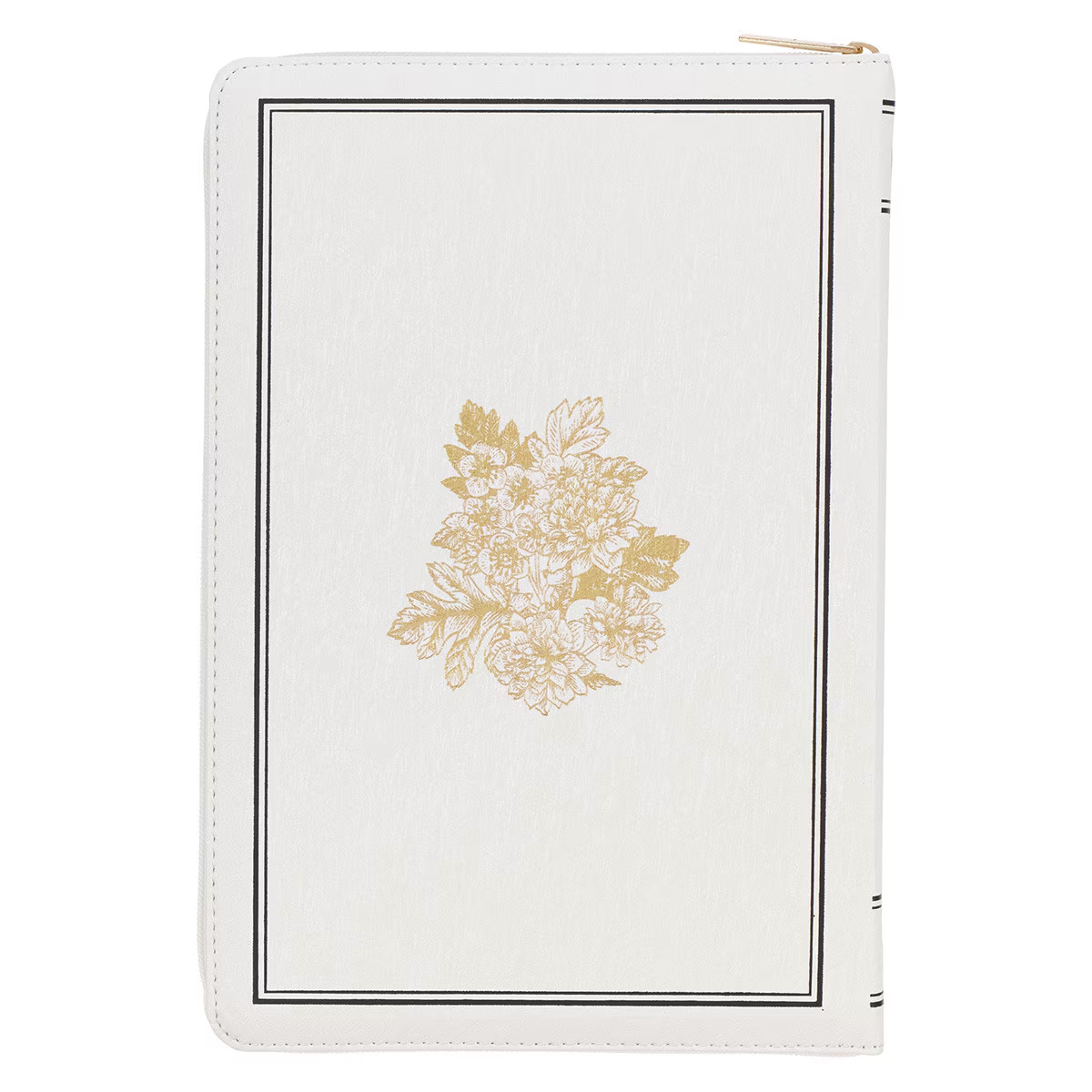 White and Gold Faux Leather Large Print Thinline King James Version Bible with Zippered Closure and Thumb Index