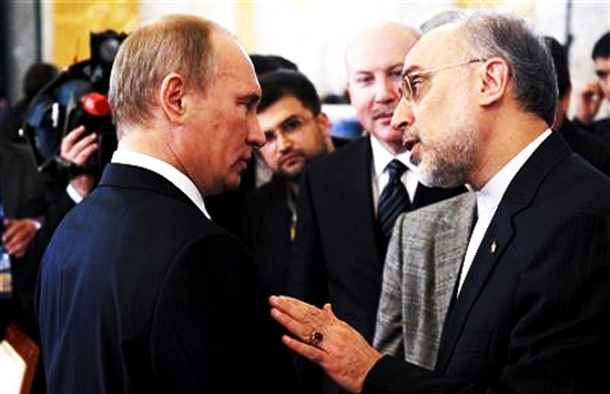 Russian Prime Minister Vladimir Putin (L) speak to Iran's Foreign Minister Ali Akbar Salehi during a meeting of the Shanghai Cooperation Organisation in St. Petersburg November 7, 2011. Credit: Reuters/Alexsey Druginyn/RIA Novosti/Pool