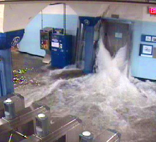 An unprecedented 13-foot surge of seawater – 3 feet above the previous record – gushed into Gotham, inundating tunnels, subway stations and the electrical system that powers Wall Street, and sent hospital patients and tourists scrambling for safety.