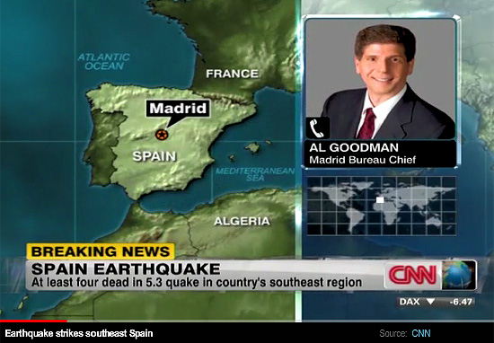 Yesterday, we reported to your that Italians were fleeing Rome based on a 1923 prediction of a major quake to occur in that city. Today, a major quake occurred in Spain, killing at least 7 people. File this story under “interesting coincidence”.