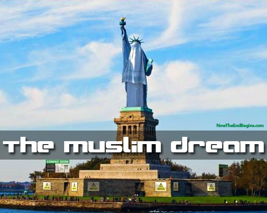 The most dearly-held goal of Islam is a United Sharia States of America, and mark my words – these people will stop at nothing until they have accomplished this goal. Having a Muslim occupying the White House makes this dream of theirs all the more possible to attain. A burka covering the Statue of Liberty’s face? Don’t laugh…you need to take this seriously. England laughed when Muslims declared they would take it over. But they aren’t laughing any longer, they are desperately trying to stave off the Muslim biological jihad that threatens to sink them.