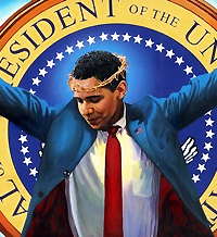 Many stories were written in the days leading up to the convention about all the street vendors selling religious-themed calendars and artwork depicting Obama variously as 1). a fulfillment of bible prophecy, and 2). the messiah. We reported it like this: