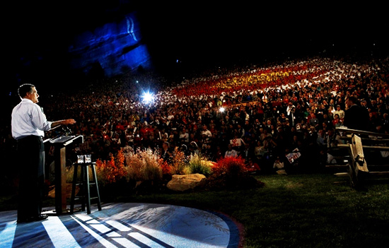 Romney the rock star! Roughly 10,000 people packed into the concert venue west of Denver, with thousands more turned away at the door. Traffic leading into Red Rocks gridlocked in the hours before the event. The lines to go through security and enter the venue wound through the parking lots.
