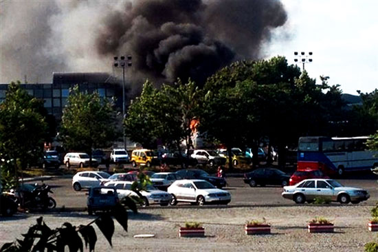 Smoke rises over the Bourgas airport in Bulgaria, after an explosion on Wednesday. Three people were killed and more than 20 wounded in an apparent bomb attack on a bus packed with Israeli passengers at a Bulgarian airport, officials said, with media saying the toll would rise.
