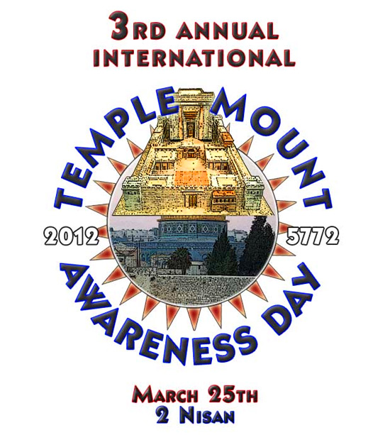 The International Department of the Temple Institute will be hosting our Third Annual International Temple Mount Awareness Day Online Six Hour Streaming Video Happening on March 25, 2012. This day was chosen as International Temple Mount Awareness Day because it is the anniversary of the dedication of the Tabernacle, and the first day of the Divine service; it is a day which is inexorably bound up with the concept of the Holy Temple and all that it means for the world.