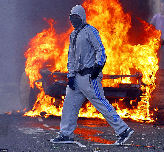 Anarchy broke out in UK last night as hooded youths set fire to cars, bins and buildings as police battled to bring them under control