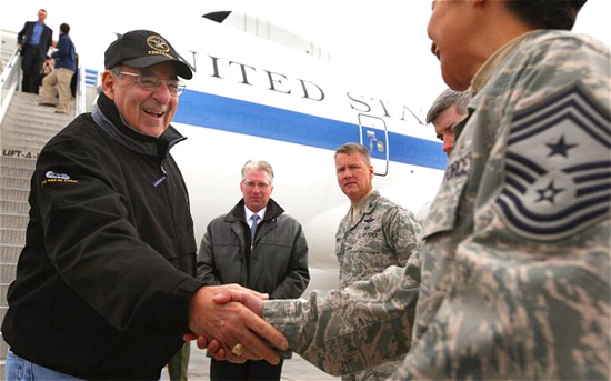 In a sign of the nervousness surrounding Mr. Panetta’s trip, the Marines and other troops who were waiting in a tent for the defense secretary to speak were abruptly asked by their commander to get up, place their weapons — M-16 and M-4 automatic rifles and 9-mm pistols — outside the tent and then return unarmed. The commander, Sgt. Maj. Brandon Hall, told reporters he was acting on orders from superiors.