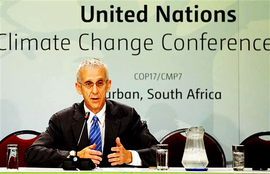 The US climate change envoy Todd Stern gives a press conference on December 8, 2011 in Durban during the UN Climate Change Conference (COP17). UN climate talks reached the end of their second week entangled in a thick mesh of issues with no guarantee that negotiators and their ministers will be able to sort them out. Photograph by: Stephane de Sakutin, AFP/Getty Images