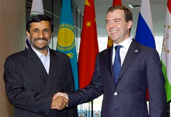 Iran’s President Mahmoud Ahmadinejad on Wednesday joined the Chinese and Russian leaders in a rare encounter at a summit in Kazakhstan, where he launched a new attack on the “slavers and colonisers” of the West. Host Kazakh President Nursultan Nazarbayev urged the Shanghai Cooperation Organisation (SCO), a security group regarded as a NATO rival founded in 2001, to take a more active role in ensuring regional security. But most attention was focused on Ahmadinejad, who was absent from last year’s SCO meeting in Tashkent after the UN Security Council agreed sanctions against Iran and was making a rare appearance at a big international meeting.