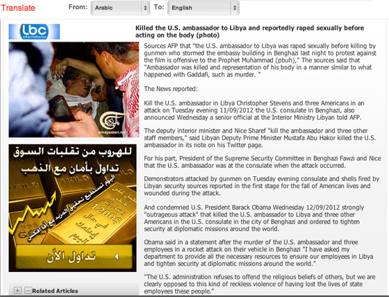 - “The U.S. ambassador to Libya was raped sexually before killing by gunmen who stormed the embassy building in Benghazi last night to protest against the film is offensive to the Prophet Muhammad”