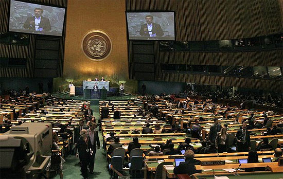 UNITED NATIONS (AP) — American diplomats led a walkout at the U.N. General Assembly Thursday as Iran’s President Mahmoud Ahmadinejad issued a sweeping attack on the United States and major West European nations, calling them “arrogant powers” ruled by greed and eager for military adventurism.