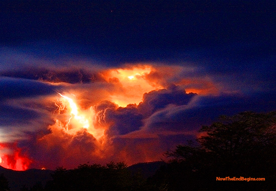 Volcanic lightning is seen over the Puyehue volcano, over 500 miles south of Santiago, Chile, Sunday June 5, 2011. Authorities have evacuated about 600 people in the nearby area.